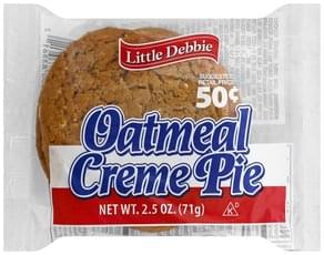 Little Debbie Oatmeal Creme Pies, 12 ct, 16.2 oz - Walmart.com Little Debbie Oatmeal Creme Pies, 12 pk./31.78 oz. 13 3.4 out of 5 Stars. 13 reviews. 3+ day shipping. Great Value Fig Bars, 14 oz. Add. $1.98. current price $1.98. ... Calories per gram: Fat 9 • Carbohydrate 4 • Protein 4 . Product details. This is the Little Debbie® snack that started it all! Oatmeal Creme Pies have been satisfying ...