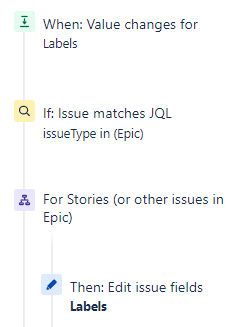 JIRA: Epics vs Labels vs Components - Stack Overflow JIRA offers the option to assign work for a particular component to a particular JIRA user. For example, all issues created with a component of 'database' could be assigned to Jill Smith. Labels are much more adaptable and they have the advantage of allowing multiple assignments (so more than one label can be associated with an issue). What is an epic? | Jira Software Cloud | Atlassian Support An epic captures a large body of work—performance-related work, for example—in a release. It's essentially a large user story that can be broken down into a number of smaller stories. An epic can span more than one project, if multiple projects are included in the board where the epic is created. The difference of Jira Epics and Components - project management style The official guidance from Jira is An epic captures a large body of work. It is essentially a large user story that can be broken down into a number of smaller stories. It may take several sprints to complete an epic. An epic can span more than one project, if multiple projects are included in the board to which the epic belongs. Jira issues that are in an epic with certain label The below JQL works: project=TML AND parentEpic in (TML-2731, TML-3053) But then I need to know the IDs of the epics, and these only live for few weeks. Labels live much longer, and I can easily search for epics with a label: project=TML AND issuetype=Epic AND labels in (IndEquip, IndAuto)