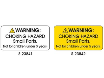 Amazon.com: 1,000 Warning Labels Small Parts Choking Hazard Stickers ... This item: 1,000 Warning Labels Small Parts Choking Hazard Stickers Not for Children Under 3 Years 1 Roll of 1.5" x 0.4" Adhesive Labels (White Background / Black Text) $29.99. In Stock. Sold by First-Rate Gifts and ships from Amazon Fulfillment. Get it as soon as Monday, Aug 29.