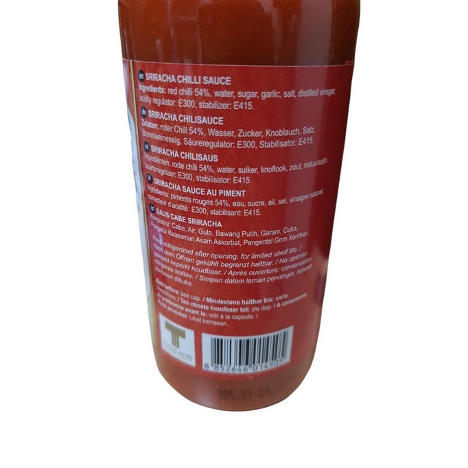 Original Sriracha Chili Sauce - MIKEE Red Chili Puree (Red Jalapeño Peppers, Salt, Acetic Acid), Water, Cane Sugar, Garlic, Sodium Benzoate. NON DAIRY; VEGAN