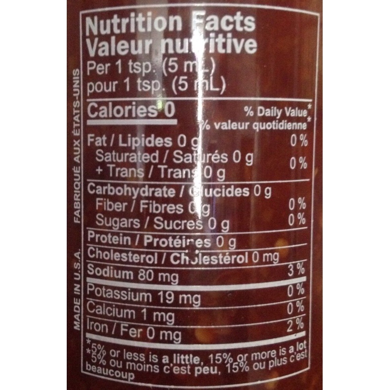 Calories in Sriracha - Nutritionix Sriracha Serving Size: tsp (6.5g ) Amount Per Serving Calories from Fat 0.5 Calories 6 % Daily Value* 0 % Total Fat 0.1g 6 % Sodium 138mg 1 % Potassium 21mg 0 % Total Carbohydrates 1.2g 1 % Dietary Fiber 0.1g Sugars 1g Protein 0.1g 3.3% Vitamin A 2.9% Vitamin C 0.1% Calcium 0.6% Iron * Percent Daily Values are based on a 2000 calorie diet. Huy Fong Foods Chili Sauce, Sriracha, Hot Nutrition Facts & Calories - Self How to interpret this. Add to Tracking Add to Compare Create Recipe Add to My Foods. Huy Fong Foods Chili Sauce, Sriracha, Hot. Serving size: 100 grams 1 ounce (28g) Custom Food (5g) FOOD SUMMARY. Nutrition facts label for Huy Fong Foods Chili Sauce, Sriracha, Hot. What Is Sriracha Made Of? - We Want The Sauce It is for this reason that you need to check labels and ingredient lists carefully. Sriracha ingredients are not all the same. Even if they taste somewhat the same. One thing is for sure though, Chili's are always the predominant ingredient. Between 60-75%, typically. So you absolutely can expect a little heat when it comes to the flavor! Sriracha Nutrition: Is Sriracha Healthy? - PepperScale A one-teaspoon serving contains 15 mg of vitamin C, which is 20 percent of your daily recommended amount of this vitamin. This version of Sriracha also contains 100 IU of vitamin A, which is 2 percent of your daily requirement. Similarly, the Sky Valley version of Sriracha also contains more nutrients than the one from Huy Fong Foods.