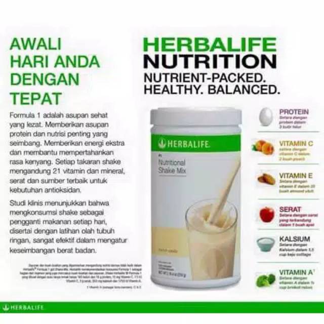 Herbalife Formula 1 Healthy Meal Nutritional Shake Mix. Flavor(Dutch ... HERBALIFE - French Vanilla 750g (Vainilla) 1,078 17 offers from $35.00 Product Description 20 vitamins, minerals and essential nutrients. 9g of protein and healthy fiber help support weight management. Includes the antioxidant vitamins C and E. Contains Aminogen, plus bromelain and papain, to support protein digestion 0 cholesterol; 0 trans fat