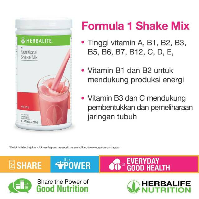 Formula 1 Healthy Meal Nutritional Shake Mix ... - Herbalife Nutrition 17 g to 24 g* of high-quality protein to satisfy hunger (when prepared with 8 fl. oz. of nonfat milk or one serving (2 scoops) of Protein Drink Mix) 21 vitamins and minerals 170 calories when prepared as directed 0 cholesterol, 0 trans fats A good source of fiber Excellent source of antioxidant Vitamins A (as beta-carotene), C and E Usage