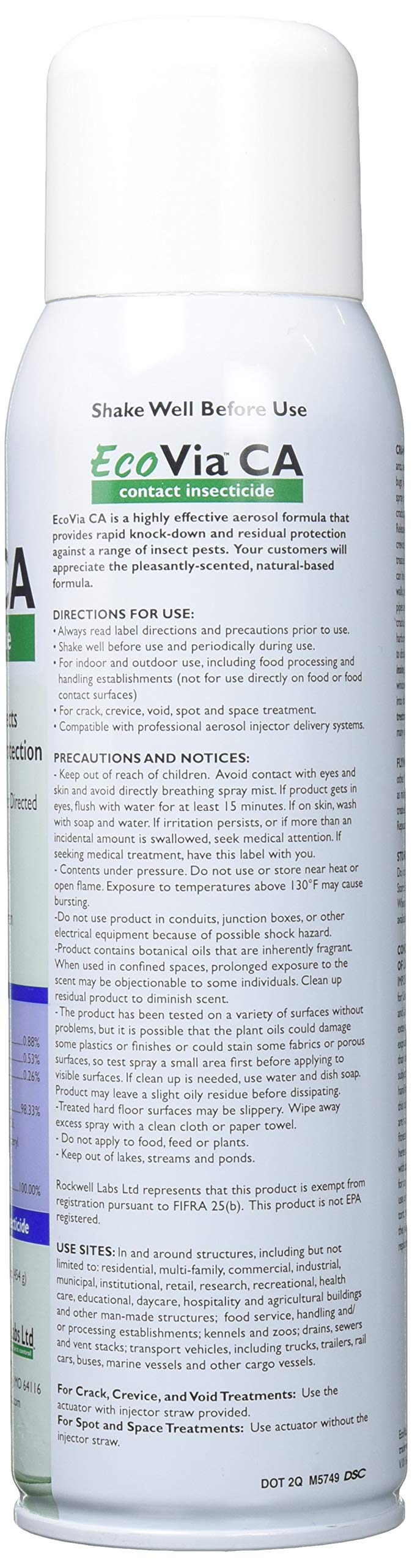 EcoVia WD - Rockwell Labs Ltd EcoVia WD - Rockwell Labs Ltd Highly Effective Botanical Insecticide that Provides Quick Control and Residual Protection When Used as a Dust or Wettable Powder EcoVia WD Product Codes: EVWD008: 8 oz puffer bottle EVWD002: 2 lb pail Research-Based Botanical Insecticide, EPA Exempt 25 (b) Product Highly Effective, Broad Spectrum Insecticide Ecovia WD Insecticide - Broad-Spectrum Insect Control - 2 lb Pail by ... Ecovia WD is an EPA Exempt 25b Product and is labeled for indoor and outdoor use. There are many listed insects for this product, please see label for full list. Ecovia WD's active ingredients are: Thyme oil, 10%; 2-Phenethyl Proprionate, 7%; Inert Ingredients: Silica, Wintergreen oil, Polyglyceryl Oleate, Isopropyl Myristate - 83%. EcoVia Research Based Insecticides Benefits - Natran Green Pest Control 2. EcoVia WD, Wettable Dust. The EcoVia Wettable Dust formulation will provide fast acting control and residual protection against invading insects. This formula is versatile and can be used as a wettable powder or dust. The broad label on EcoVia Wettable Dust means that it is safe for use on interiors, exteriors and livestock facilities. EcoVia EC - diypestcontrol EcoVia EC Emulsifiable Concentrate is a broad spectrum insecticide . The store will not work correctly in the case when cookies are disabled. 1-800-476-3368. Fast & Free Shipping ... Application Rates for Livestock Facility-See Label. Specifications; Packaging: N/A: ... EcoVia WD. Starting at $21.85. EcoVia G . $60.95. Add to Cart. EcoVia CA ...
