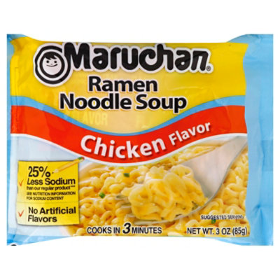 Maruchan Ramen Noodles, Chicken Flavor - Fooducate For women: 100 calories / 6 tsp per day For men: 150 calories: 9 tsp per day More info. Salty! Has over 35% of the daily max. Americans consume 4000 mg of sodium daily when the maximum recommended amount is 2300mg for healthy adults. Many people should not exceed 1500mg. Maruchan Chicken Ramen Noodle Soup Cup - 2.25oz : Target Take your snack or lunch on-the-go with Maruchan Ramen Noodle Soup Mix with Chicken Flavor - 2.25 oz. This economical and tasty meal option takes just 3 minutes to prepare once you add boiling water, and can be easily jazzed up with your choice of extra ingredients such as egg, veggies or meat.