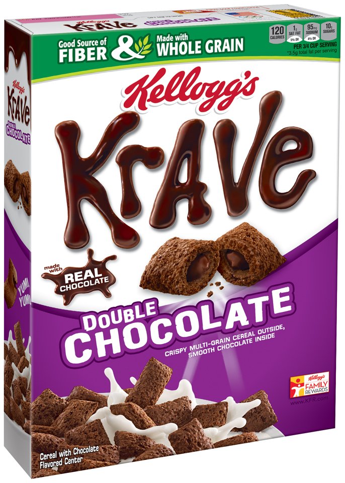 Cereal (Kellogg's Krave) nutrition facts and analysis. Cereal (Kellogg's Krave) contains 2.4 g of saturated fat and 0 mg of cholesterol per serving. 40 g ... Kellogg’s® Krave™ Chocolate Cereal - SmartLabel™ *The % Daily Value (DV) tells you how much a nutrient in a serving of food contributes to a daily ...